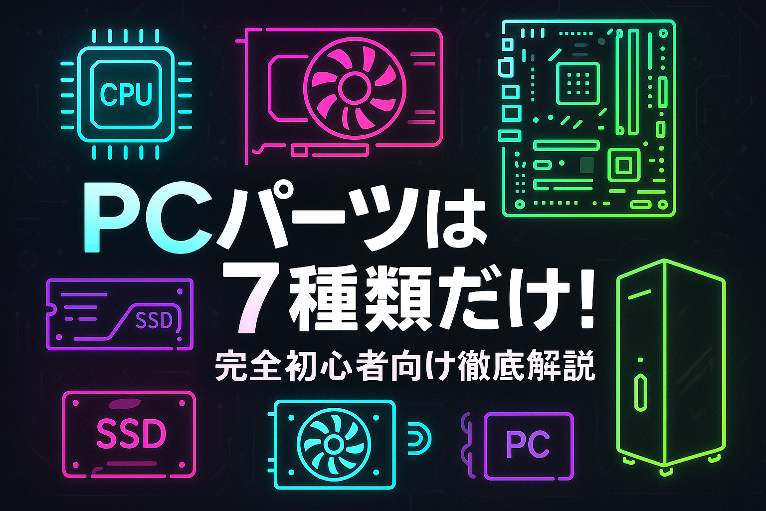 そんな疑問を持っているあなたに朗報です。実はPCを動かすために必要なパーツは、たった7種類だけなんです。
